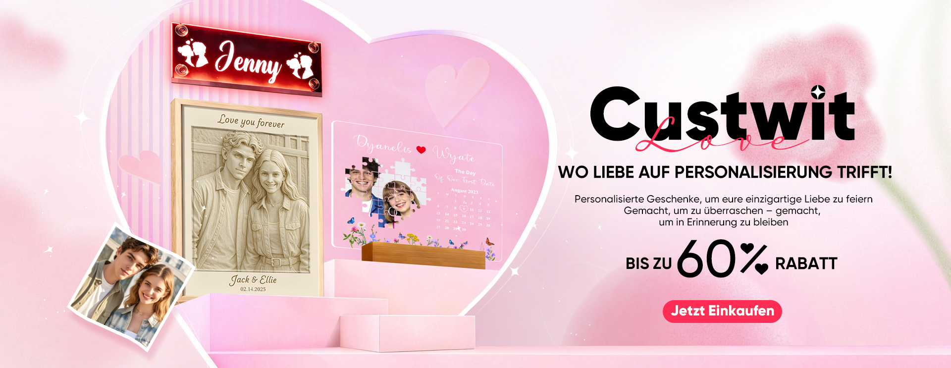 CustWit-Personalisierte Geschenke werden mittlerweile in den meisten Teilen der Welt verkauft – von perlenbestickten Armbändern bis zu personalisierten Nachtlichtern. Wer auch immer Sie überraschen wollen: Bei CustWit finden Sie das passende Geschenk für diese Person oder diesen besonderen Moment. Unsere Produkte lassen sich einfach mit Fotos und persönlichem Text personalisieren. Mit nur wenigen Klicks können Kunden für Geburtstage, Jubiläen, Valentinstag, Muttertag, Vatertag, Weihnachten oder als Dankgeschenk ein einzigartiges Geschenk gestalten – immer mit Liebe gemacht!