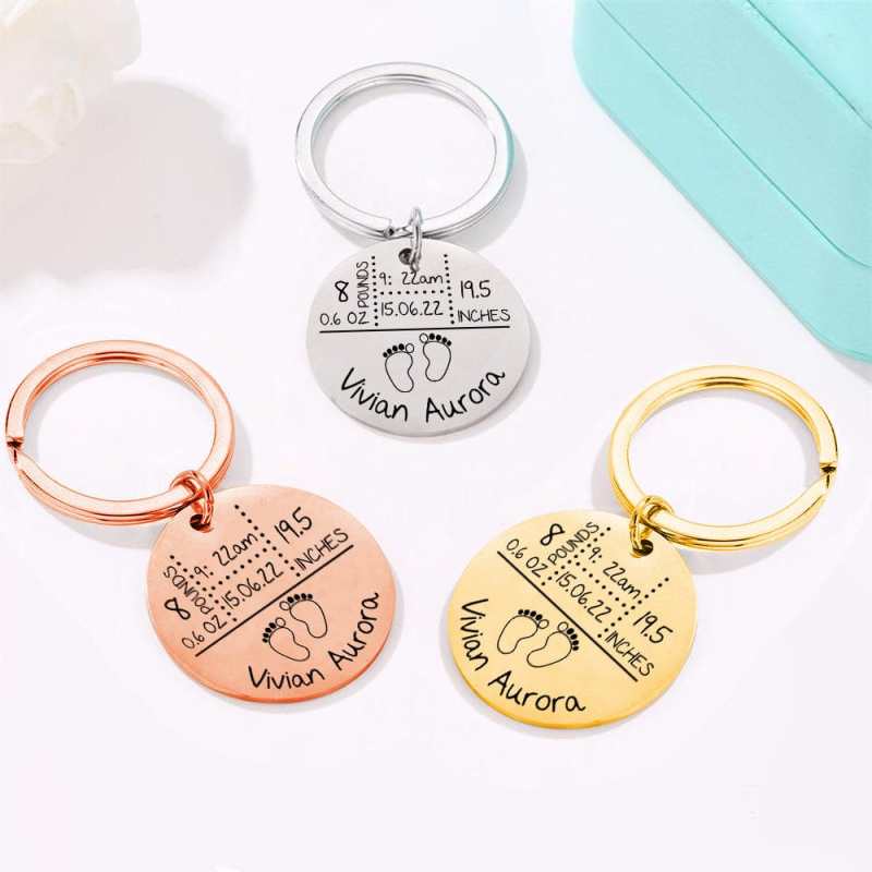 Personalisierter Schlüsselanhänger Zur Geburt – Baby-schlüsselanhänger Mit Babydaten – Geschenk Für Frischgebackene Mütter