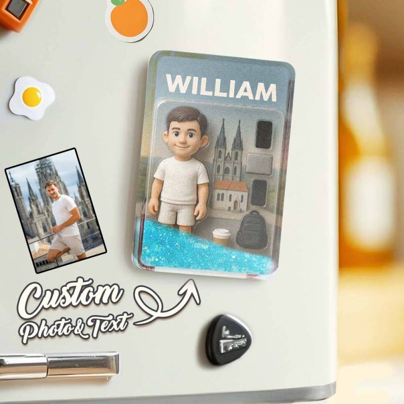 Benutzerdefinierte 3d-effekt Actionfigur Pack Verpackung Spielzeugbox Stil Kunst Geschenk Personalisierte Quicksand Kühlschrankmagnet Geschenk Für Vater
