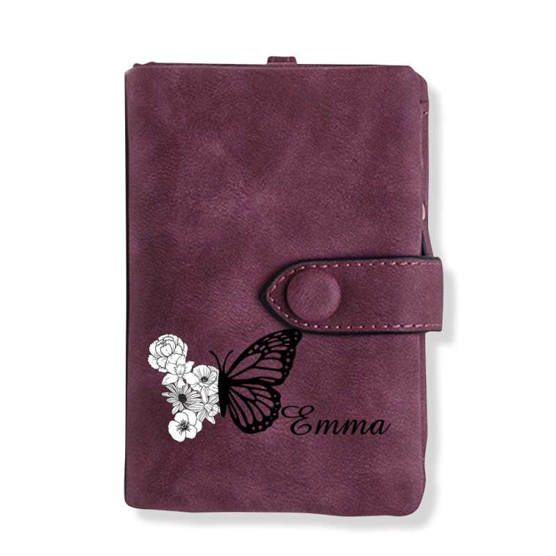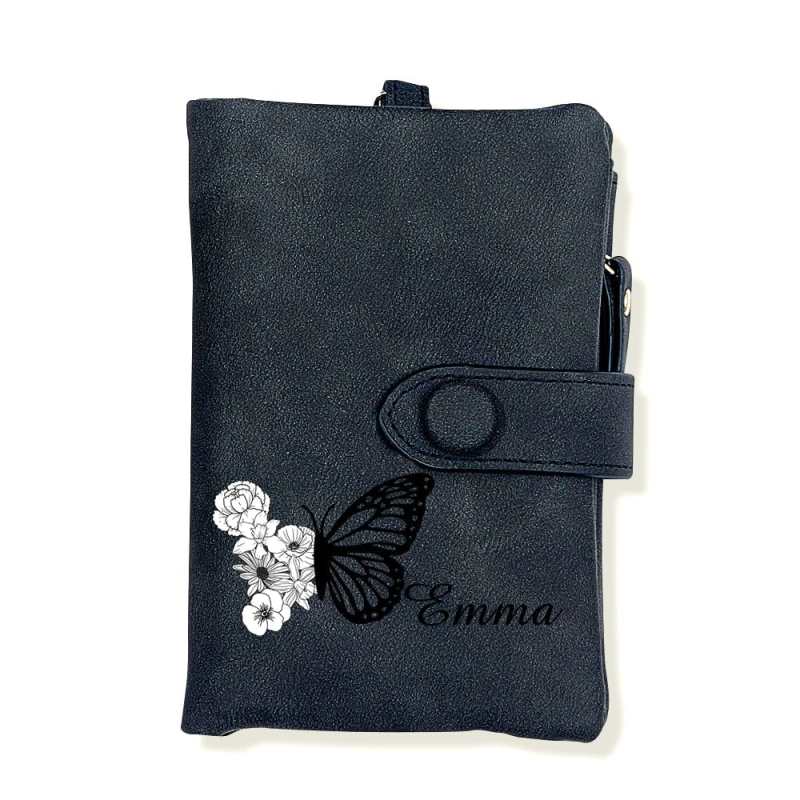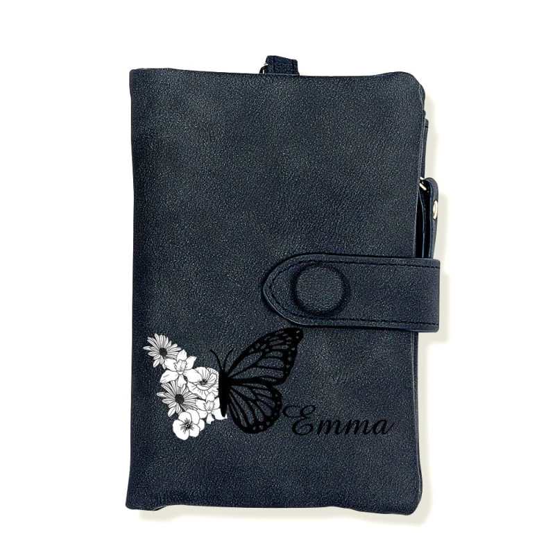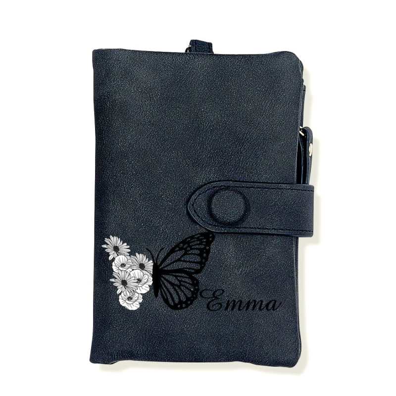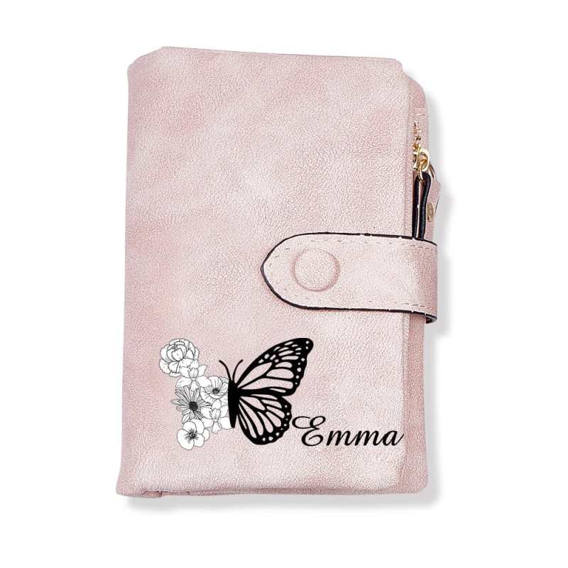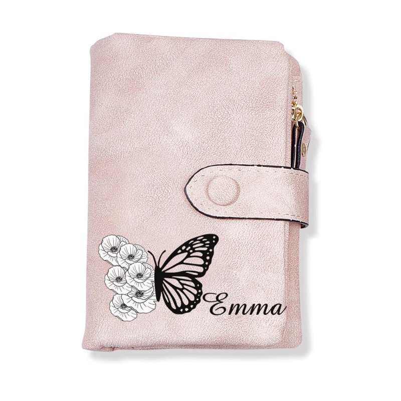 Personalisiertes Dreifach Faltbares Lederportemonnaie Mit Schmetterlings-geburtsblume Und Münzfach, Personalisiertes Muttertagsgeschenk Für Die Frau