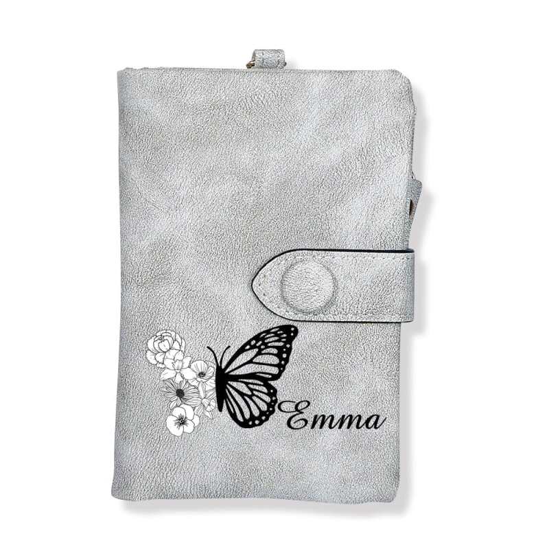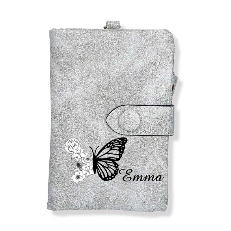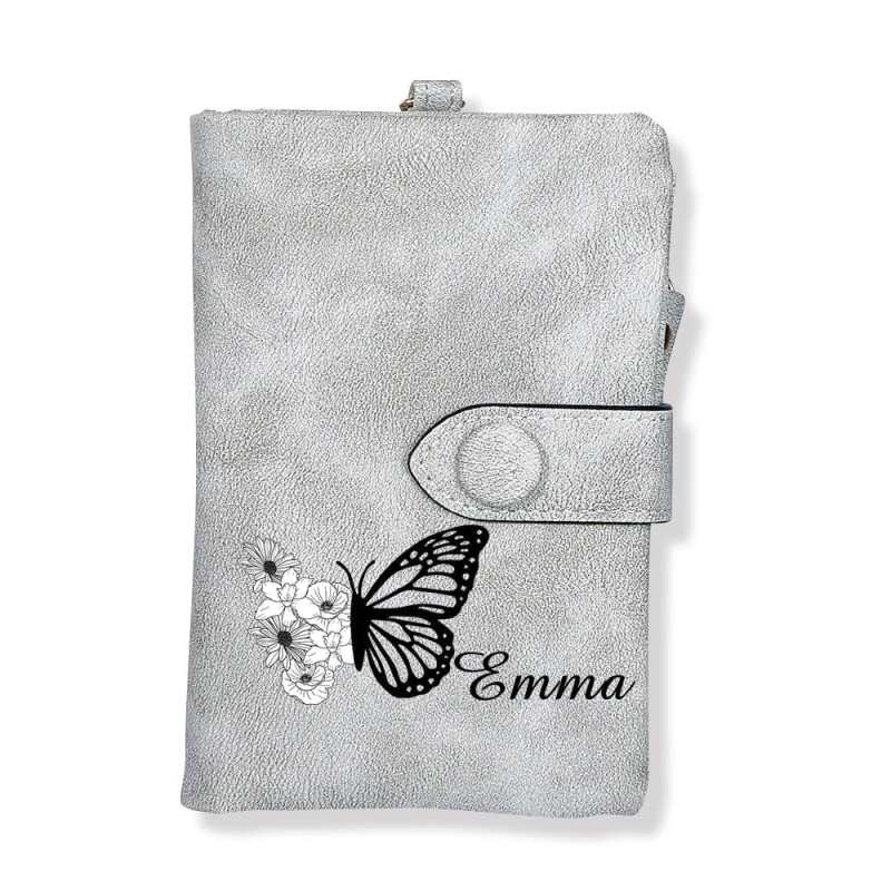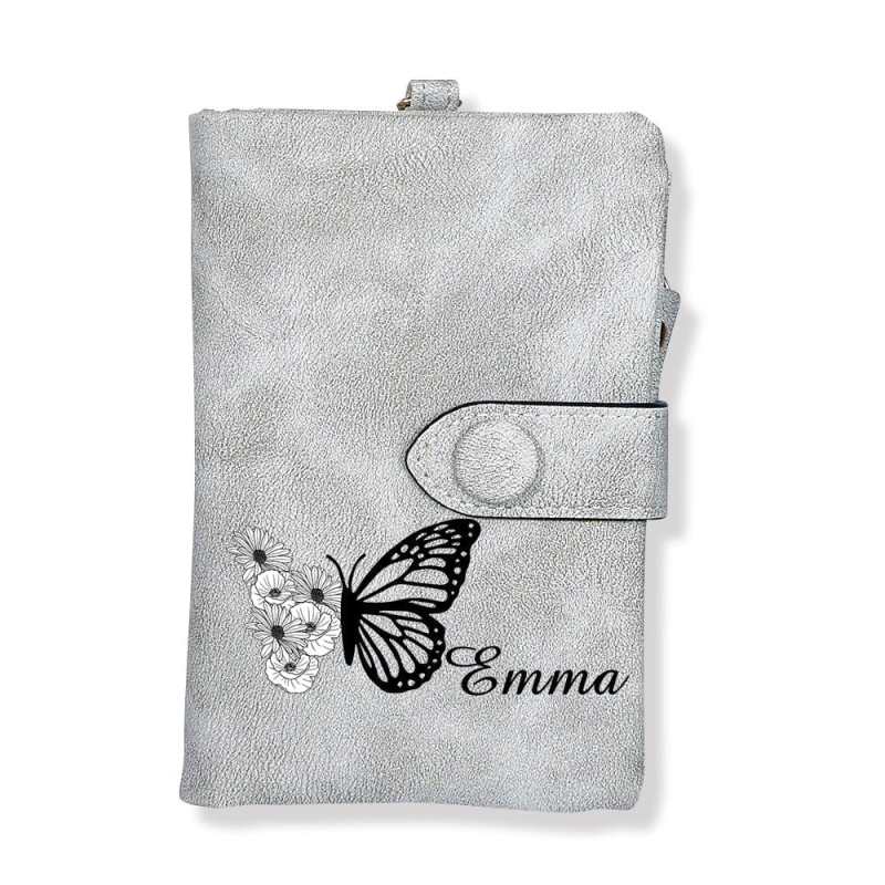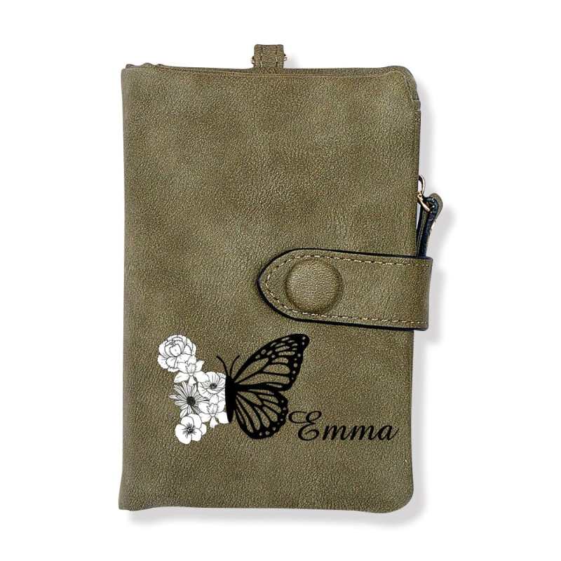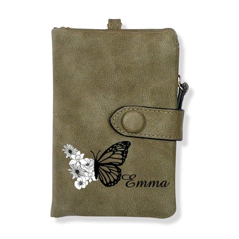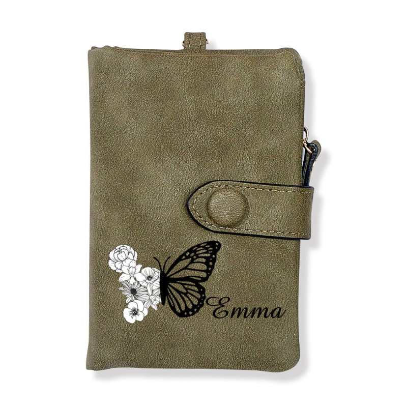 Personalisiertes Dreifach Faltbares Lederportemonnaie Mit Schmetterlings-geburtsblume Und Münzfach, Personalisiertes Muttertagsgeschenk Für Die Frau