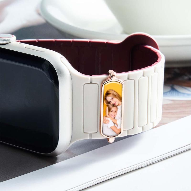 Uhrenarmband-anhänger Mit Fotogravur – Personalisiertes Smartwatch-accessoire Mit Perlen